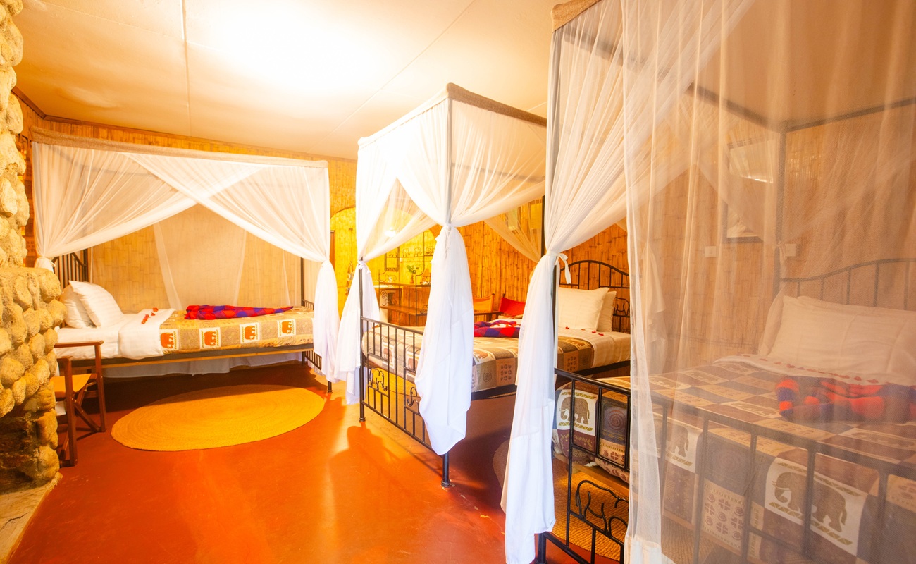 Our garden rooms quadruple is perfect for families or groups of four, offering a spacious retreat with a private balcony overlooking the lush gardens.
